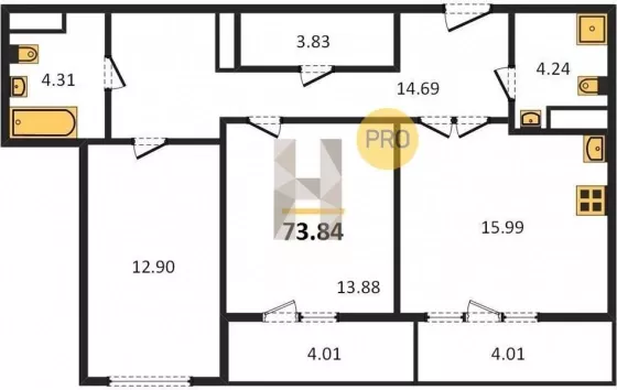 Квартира: 2 к 73,84 кв.м., 12 этаж в комплексе Модум, 1 очередь, корп.3, сдача: 2кв. , этажей: 12, адрес Глухарская ул., д. 54/стр.1, Застройщик: Arsenal.