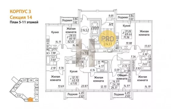 Квартира: 2 к 71,36 кв.м., 6 этаж в комплексе Модум, 1 очередь, корп.3, сдача: 2кв. , этажей: 12, адрес Глухарская ул., д. 54/стр.1, Застройщик: Arsenal.