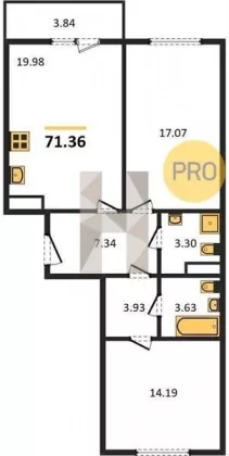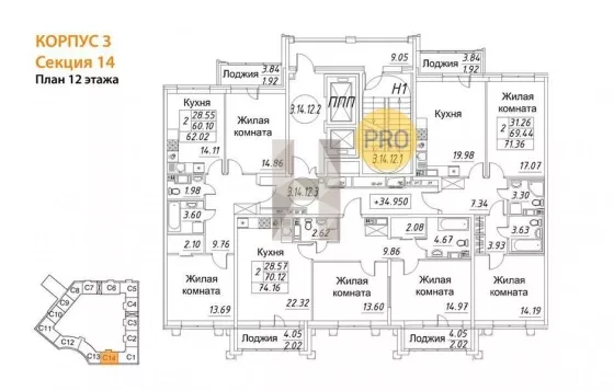 Квартира: 2 к 71,36 кв.м., 12 этаж в комплексе Модум, 1 очередь, корп.3, сдача: 2кв. , этажей: 12, адрес Глухарская ул., д. 54/стр.1, Застройщик: Arsenal.