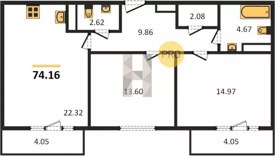 Квартира: 2 к 74,16 кв.м., 12 этаж в комплексе Модум, 1 очередь, корп.3, сдача: 2кв. , этажей: 12, адрес Глухарская ул., д. 54/стр.1, Застройщик: Arsenal.