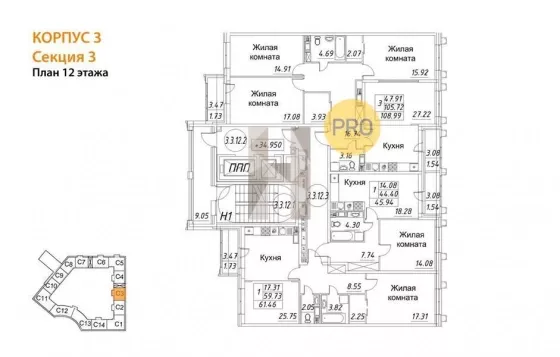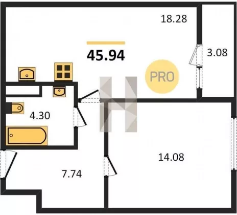 Квартира: 1 к 45,94 кв.м., 12 этаж в комплексе Модум, 1 очередь, корп.3, сдача: 2кв. , этажей: 12, адрес Глухарская ул., д. 54/стр.1, Застройщик: Arsenal.