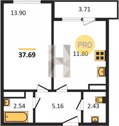 Квартира: 1 к 37,69 кв.м., 11 этаж в комплексе Модум, 1 очередь, корп.3, сдача: 2кв. , этажей: 12, адрес Глухарская ул., д. 54/стр.1, Застройщик: Arsenal.