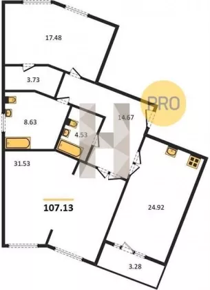 Квартира: 2 к 107,13 кв.м., 2 этаж в комплексе Модум, 1 очередь, корп.3, сдача: 2кв. , этажей: 12, адрес Глухарская ул., д. 54/стр.1, Застройщик: Arsenal.