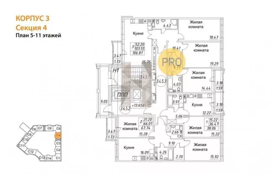 | Жилая площадь | 15.22 |