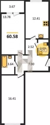 | Площадь, кв.м. | 60.58 |