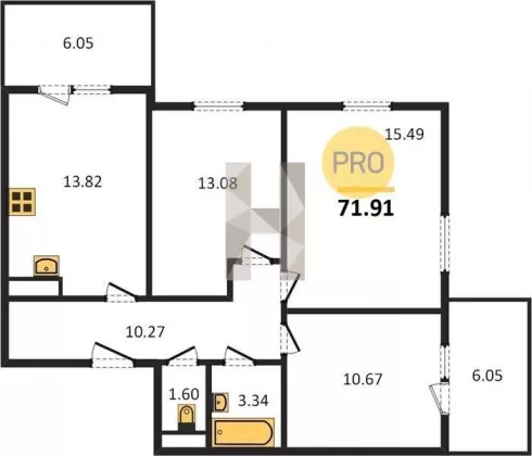 | Площадь кухни, кв.м. | 13.82 |