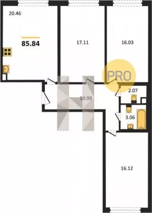 Название ЖК OKLA Площадь, кв.м. 85.84 Жилая площадь 49.26 Площадь кухни, кв.м. 20.46 Комнат в квартире 3 Этаж 1 Этажность 7 Материал стен Монолитный Ремонт Косметический