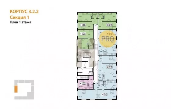 Квартира: 2 к 58,76 кв.м., 1 этаж в комплексе OKLA, 2 очередь, корп.3.2.2, сдача: 4кв. , этажей: 7, адрес Коломяги м.о., , Застройщик: Ленстройтрест.