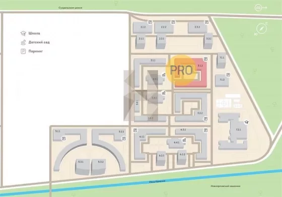 В состав комплекса входят 3 современных детских сада на 140 мест каждый. Ваших малышей ждет безопасное, красивое и продуманное пространство с дизайнерским благоустройством территории. Современная школа на 825 мест совсем скоро откроет двери для своих первых школьников.Расположение