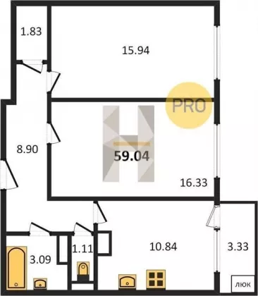 | Площадь, кв.м. | 59.04 |