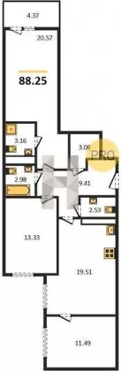 | Площадь, кв.м. | 88.25 |