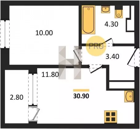 Квартира: 1 к 30,90 кв.м., 8 этаж в комплексе Тайм Сквер, 1 очередь, корп.12, сдача: 2кв. , этажей: 13, адрес Глухарская ул., , Застройщик: РосСтройИнвест.
