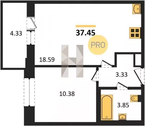 Название ЖК Новый Лесснер Площадь, кв.м. 37.45 Жилая площадь 10.38 Площадь кухни, кв.м. 18.59 Комнат в квартире 1 Этаж 6 Этажность 12 Материал стен Кирпич Ремонт Предчистовая