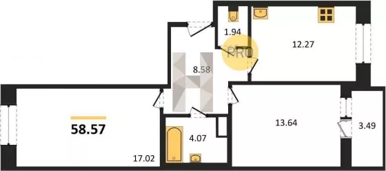 Название ЖК Новый Лесснер Площадь, кв.м. 58.57 Жилая площадь 30.66 Площадь кухни, кв.м. 12.27 Комнат в квартире 2 Этаж 2 Этажность 12 Материал стен Кирпич Ремонт Предчистовая
