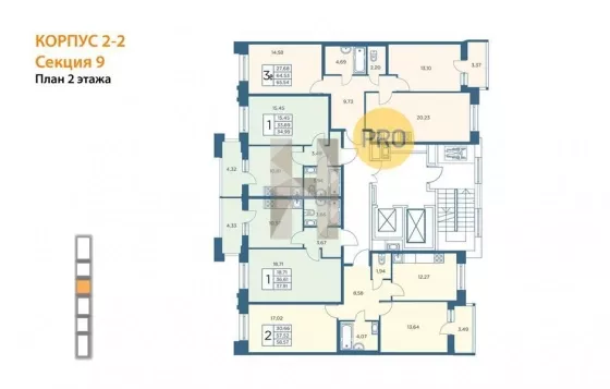 Квартира: 2 к 58,57 кв.м., 2 этаж в комплексе Новый Лесснер, 2 очередь, корп.2-2, сдача: 2кв. , этажей: 12, адрес Большой Сампсониевский пр., д. 1/2, Застройщик: ОТДЕЛСТРОЙ.