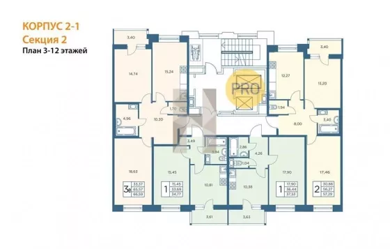 Квартира: 2 к 57,29 кв.м., 6 этаж в комплексе Новый Лесснер, 2 очередь, корп.2-1, сдача: 2кв. , этажей: 12, адрес Большой Сампсониевский пр., д. 1/1, Застройщик: ОТДЕЛСТРОЙ.
