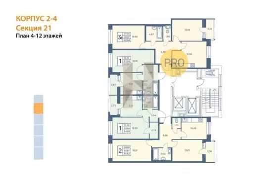 Квартира: 2 к 54,62 кв.м., 8 этаж в комплексе Новый Лесснер, 2 очередь, корп.2-4, сдача: 2кв. , этажей: 12, адрес Большой Сампсониевский пр., д. 1/4, Застройщик: ОТДЕЛСТРОЙ.