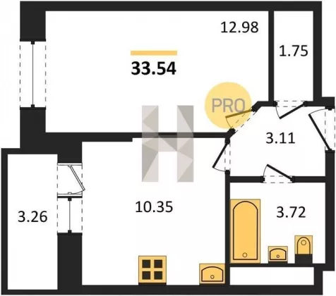 | Площадь, кв.м. | 33.54 |