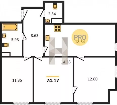 | Площадь, кв.м. | 74.17 |