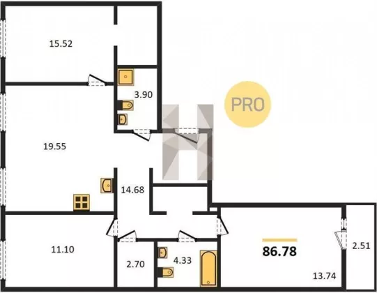 Название ЖК ID Svetlanovskiy Площадь, кв.м. 86.78 Жилая площадь 40.36 Площадь кухни, кв.м. 19.55 Комнат в квартире 3 Этаж 2 Этажность 12 Материал стен Кирпич Ремонт Черновая отделка