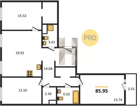 Название ЖК ID Svetlanovskiy Площадь, кв.м. 85.95 Жилая площадь 40.36 Площадь кухни, кв.м. 19.55 Комнат в квартире 3 Этаж 3 Этажность 12 Материал стен Кирпич Ремонт Черновая отделка