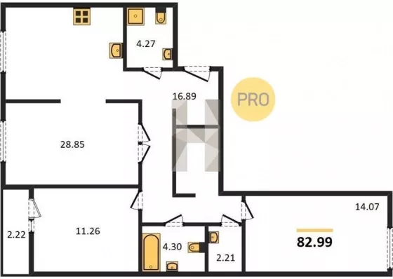 Название ЖК ID Svetlanovskiy Площадь, кв.м. 82.99 Жилая площадь 25.33 Площадь кухни, кв.м. 28.85 Комнат в квартире 2 Этаж 2 Этажность 12 Материал стен Кирпич Ремонт Черновая отделка