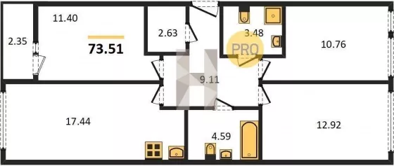 Название ЖК Master Place Площадь, кв.м. 73.51 Жилая площадь 35.08 Площадь кухни, кв.м. 17.44 Комнат в квартире 3 Этаж 1 Этажность 7 Материал стен Кирпич Ремонт Без отделки