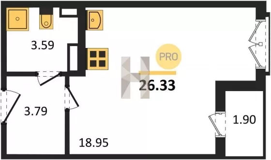 | Площадь, кв.м. | 26.33 |