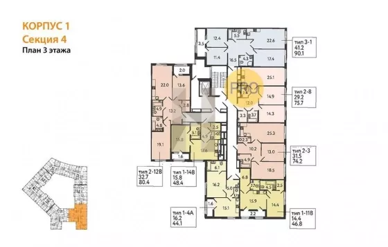 Квартира: 2 к 74,20 кв.м., 3 этаж в комплексе МИРЪ, 1 очередь, корп.1, сдача: 4кв. , этажей: 9, адрес Миргородская ул., д. 1/А, Застройщик: RBI.