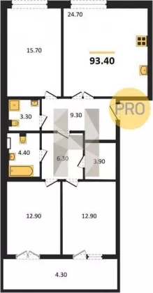 Название ЖК МИРЪ Площадь, кв.м. 93.4 Жилая площадь 41.5 Площадь кухни, кв.м. 24.7 Комнат в квартире 3 Этаж 5 Этажность 9 Материал стен Кирпич Ремонт Черновая отделка
