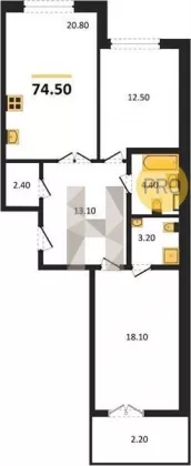 | Площадь, кв.м. | 74.5 |
