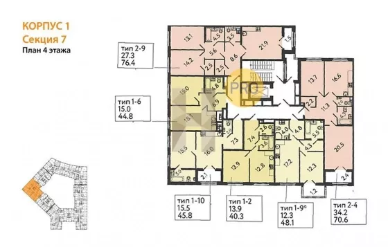 Квартира: 2 к 70,60 кв.м., 4 этаж в комплексе МИРЪ, 1 очередь, корп.1, сдача: 4кв. , этажей: 9, адрес Миргородская ул., д. 1/А, Застройщик: RBI.