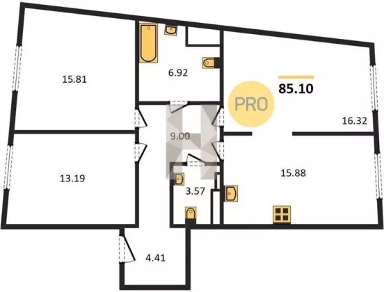 Название ЖК Северная корона Площадь, кв.м. 85 Жилая площадь 45.32 Площадь кухни, кв.м. 15.88 Комнат в квартире 3 Этаж 6 Этажность 7 Материал стен Монолитный Ремонт Черновая отделка