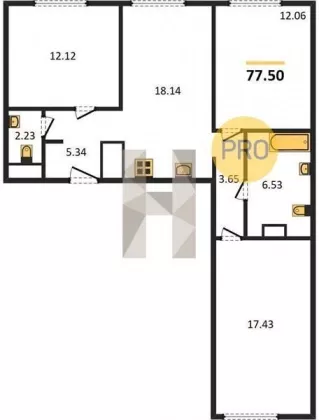 Квартира: 3 к 77,20 кв.м., 7 этаж в комплексе Северная корона, 1 очередь, корп.6, сдача: 4кв. , этажей: 8, адрес Реки Карповки наб., д. 31 корп.1 стр.1, Застройщик: ПСК.