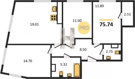 | Площадь, кв.м. | 75.5 |