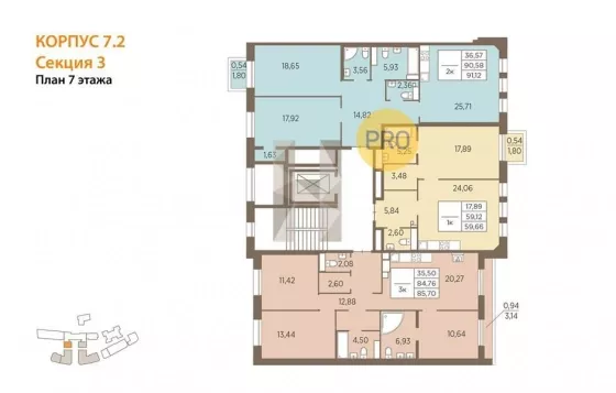 Квартира: 1 к 59,90 кв.м., 7 этаж в комплексе Северная корона, 1 очередь, корп.7.2, сдача: 4кв. , этажей: 8, адрес Реки Карповки наб., д. 31 корп.1 стр.1, Застройщик: ПСК.