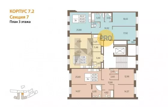 Квартира: 2 к 90,83 кв.м., 3 этаж в комплексе Северная корона, 1 очередь, корп.7.2, сдача: 4кв. , этажей: 8, адрес Реки Карповки наб., д. 31 корп.1 стр.1, Застройщик: ПСК.