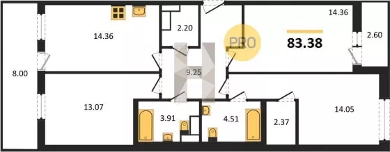 | Площадь, кв.м. | 83.38 |