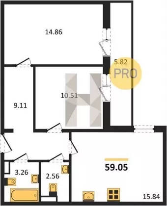 Квартира: 2 к 59,05 кв.м., 3 этаж в комплексе Cube, 2 очередь, корп.2 (2 этап), сдача: 4кв. , этажей: 18, адрес Кубинская ул., д. 82, Застройщик: РосСтройИнвест.