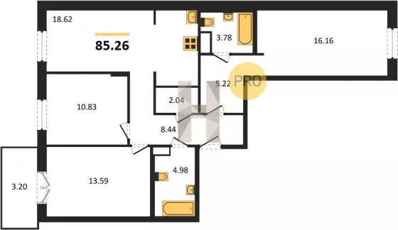 | Площадь, кв.м. | 85.26 |