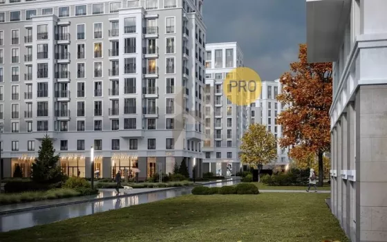 Благоустроенный двор без машин с собственными детским садом, школой и образовательным кластером для детей и взрослых, галерея магазинов и сервисов первой необходимости, прогулочные променады со спортивными площадками.