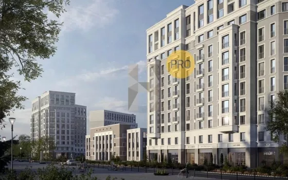 Благоустроенный двор без машин с собственными детским садом, школой и образовательным кластером для детей и взрослых, галерея магазинов и сервисов первой необходимости, прогулочные променады со спортивными площадками.