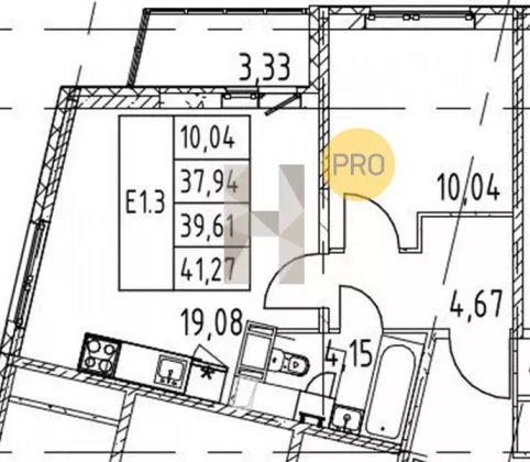 | Площадь кухни, кв.м. | 19.08 |