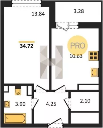 | Площадь, кв.м. | 34.72 |
