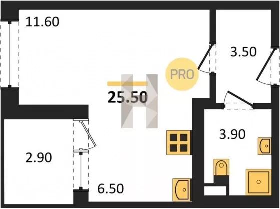 | Площадь, кв.м. | 25.5 |