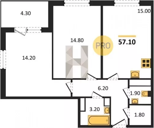 Название ЖК ЮгТаун.Греция Площадь, кв.м. 57.1 Жилая площадь 29 Площадь кухни, кв.м. 15 Комнат в квартире 2 Этаж 4 Этажность 5 Материал стен Монолитный Ремонт Косметический