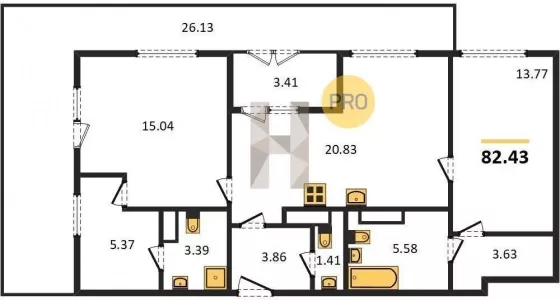 Название ЖК БелАрт Площадь, кв.м. 82.43 Жилая площадь 28.81 Площадь кухни, кв.м. 20.83 Комнат в квартире 2 Этаж 21 Этажность 23 Материал стен Кирпич Ремонт Чистовая