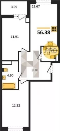| Площадь кухни, кв.м. | 13.67 |