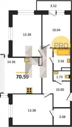 | Площадь, кв.м. | 70.59 |
