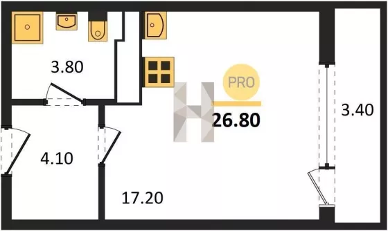 | Площадь, кв.м. | 26.8 |